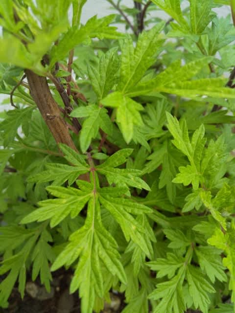 2022-04-28 ヨモギの季節 薬草 もうすぐこどもの日。柏餅も好きですが草餅も捨てがたい・・・むむむ、悩みますよねー☺️和菓子やさんで買うものも美味しいですが、お家で草餅を作るのも香りが格別🌿草餅にいれるヨモギ、古来から日本人に馴染みの植物で、あまりにも身近すぎて逆に見分けられない😅という方もけっこういるかと思います。今日はわが家のヨモギを写しましたので、見分ける参考に、どうぞ☺️(相変わらず写真がマズくて、スミマセン)ちなみにこのヨモギ、薬草講座の先生のお墨付きがありますので、ぜったいヨモギですからー😃仮托葉(かりたくよう)という小さな葉がポチポチあります。赤丸の中の葉裏が白いのお分かりでしょうか?これがヨモギの特徴です。では、よい休日をお過ごしください✨